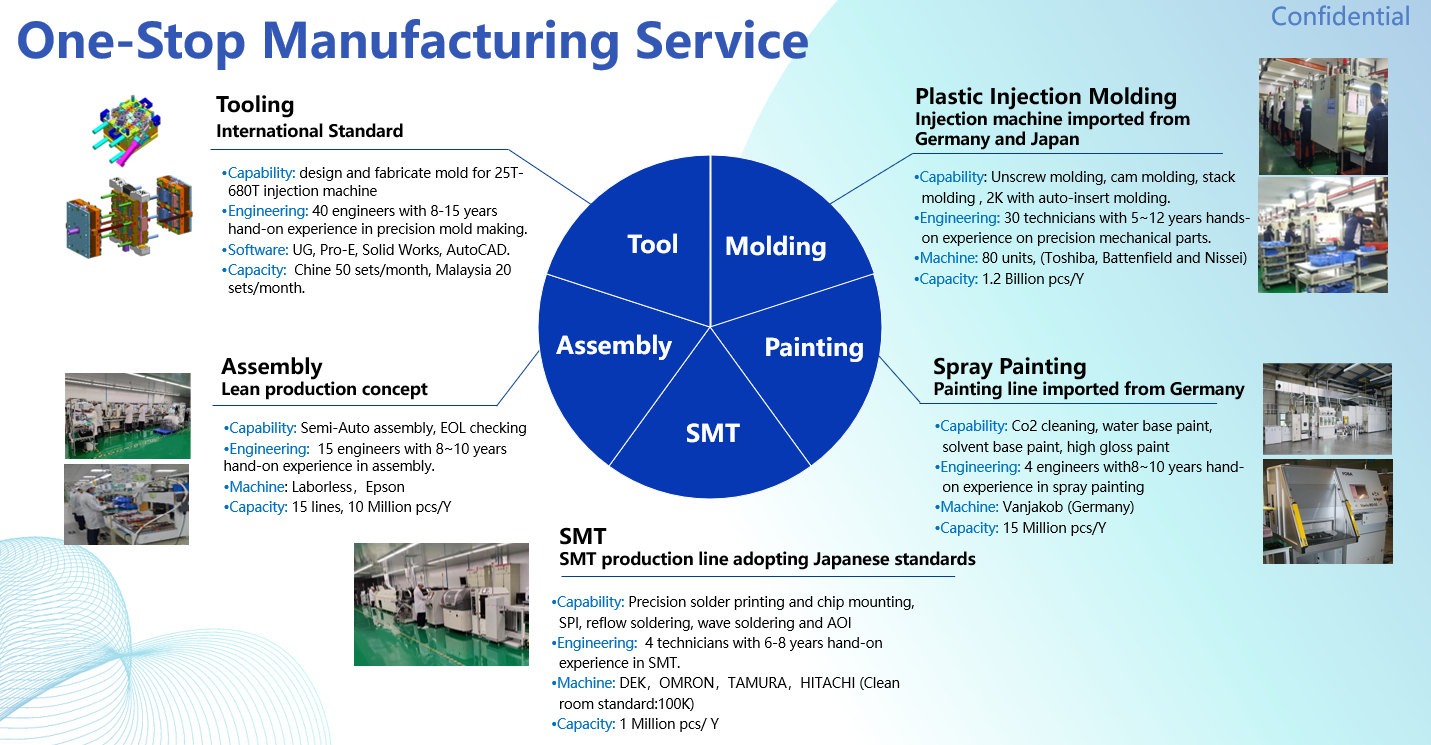 Lucky Electronics Technologies (Guangdong) Co., Ltd. was established in 2010. It is an enterprise specializing in the design and manufacturing of precision plastic molds, precision injection molding, spray painting, SMT PCBA and automotive electronic product assembly. We have rich experience and superb technology in the manufacturing of automotive electronic components, office equipment, precision industrial electronics and new energy products. We have established offices and factories in Dongguan, Guangzhou, Singapore and Malaysia to support and serve strategic customers in different regions around the world.